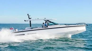 The Axopar 38ft Yacht is an incredibly versatile, high-performance boat designed for both leisure cruising and thrilling adventures. Its cutting-edge design offers impressive speed and handling. Boasting twin engine options, this yacht offers a smooth ride with luxurious features. With space for 8-10 guests, it's perfect for memorable weekend getaways or day trips.