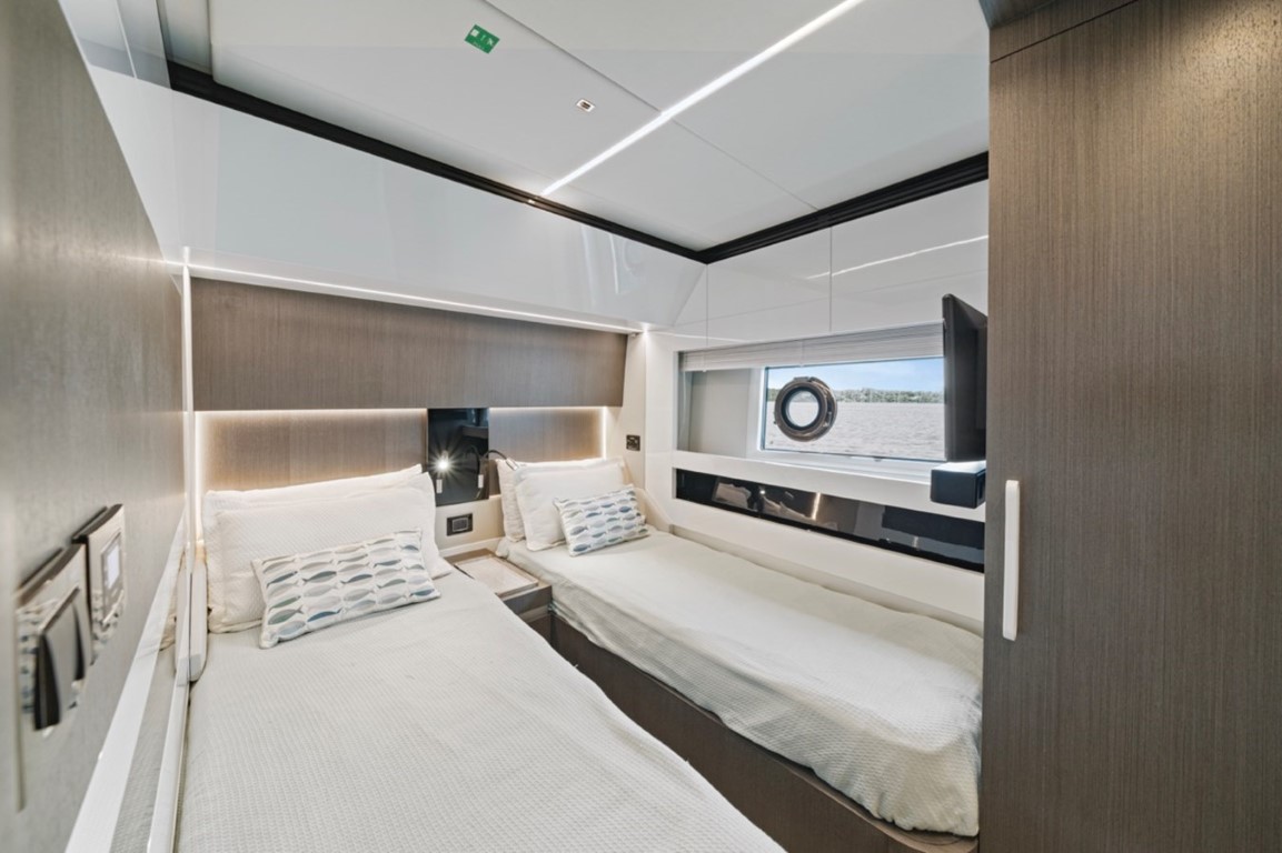 The Azimut 72 is an epitome of luxury and performance, combining a sleek design with state-of-the-art technology. Equipped with twin powerful MAN engines, this yacht can reach speeds of up to 31 knots, making it perfect for cruising. Its spacious flybridge offers ample space for relaxation, and the yacht’s interiors are designed with the finest materials to create an elegant ambiance